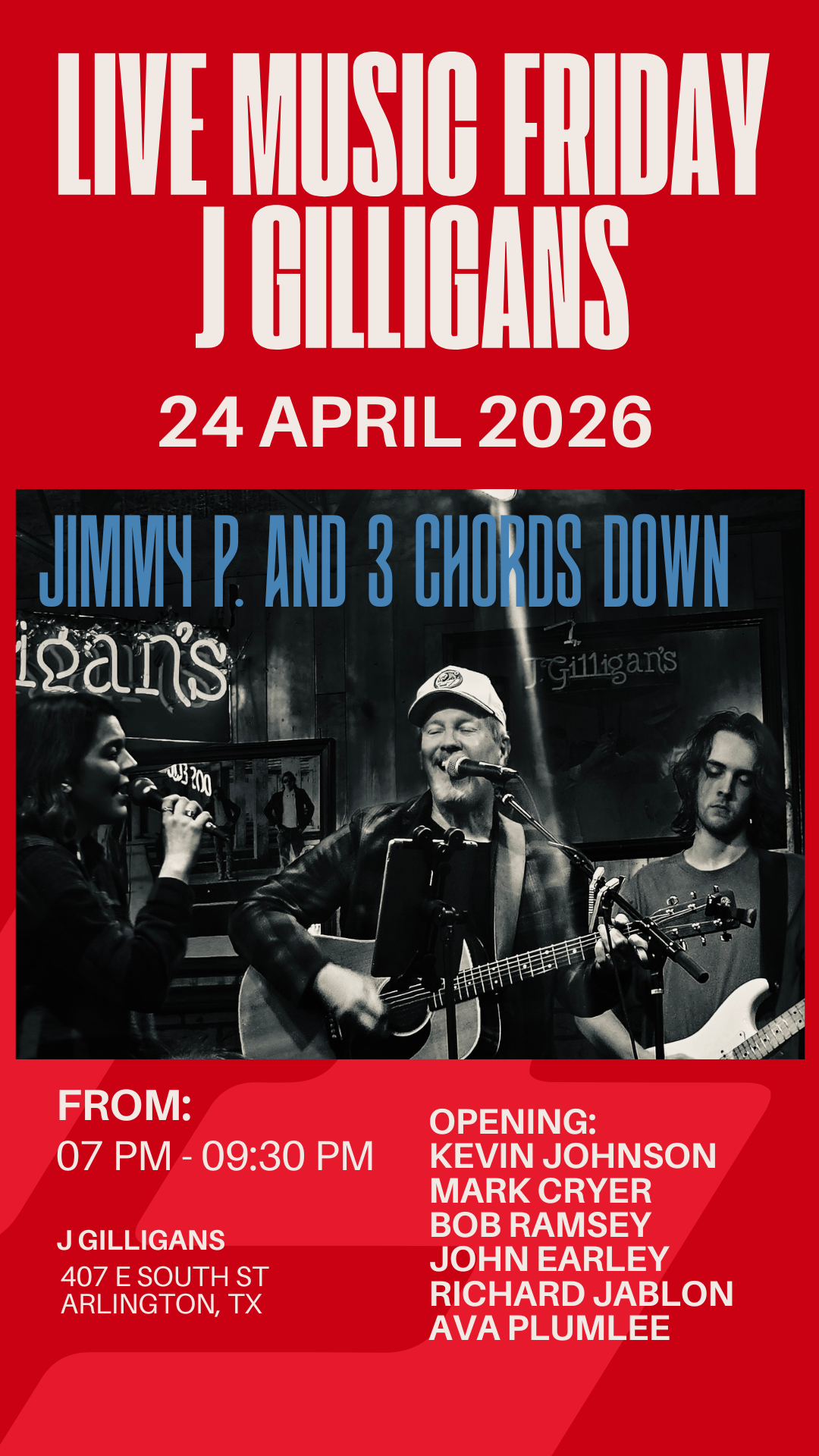 Enjoy some free Folk, Country, Rock, and Blues along with Gilligan's famous Irish nachos!