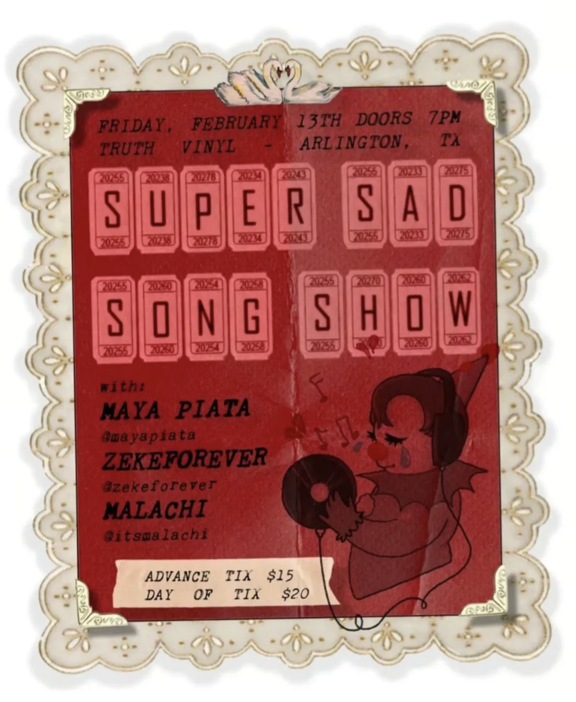 A pre-Valentine's show! $20 tickets at the door, or $15 ahead of time.