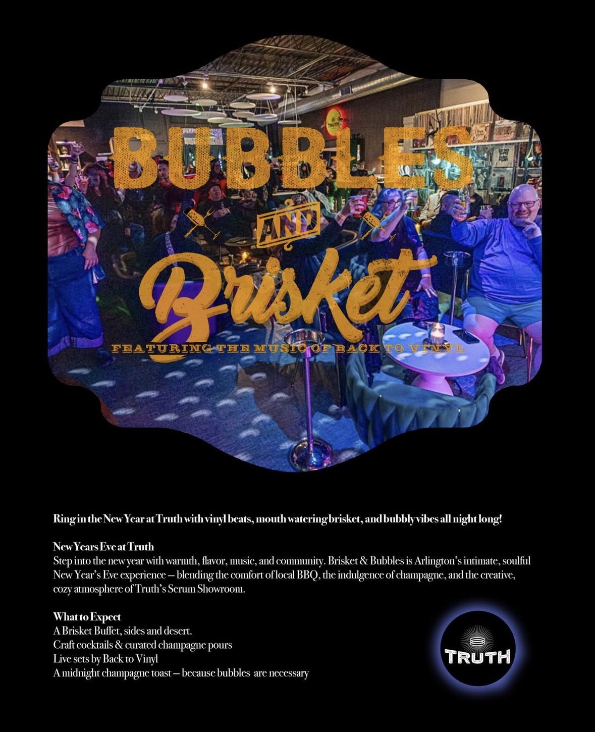 Celebrate the New Year with Bubbles and Brisket! Featuring live music from Back to Vinyl!