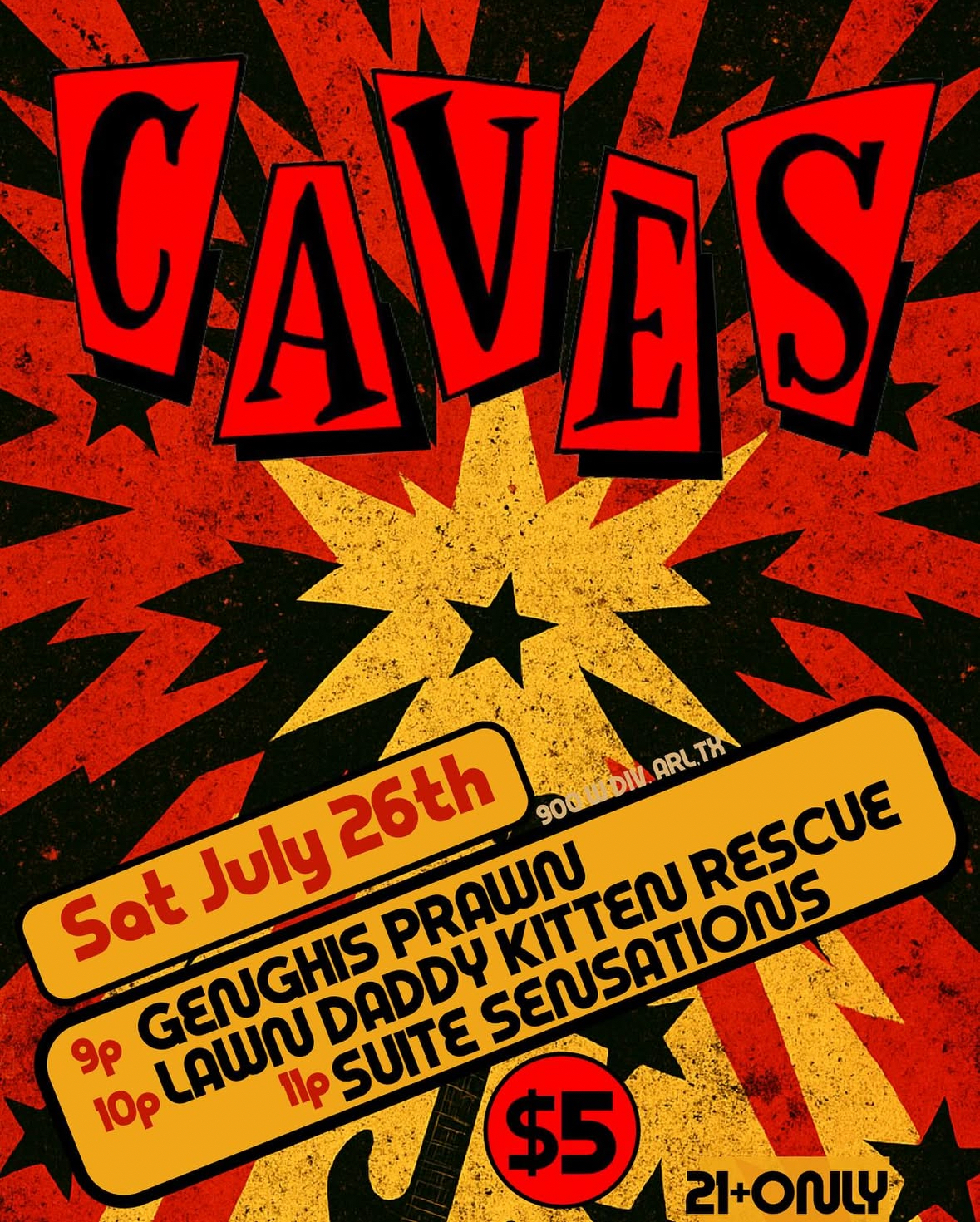 July 26 @ 9:00 pm - 11:30 pm Genghis Prawn, Lawn Daddy Kitten Rescue, & Suite Sensations 9:00 PM - Genghis Prawn 10:00 PM - Lawn Daddy Kitten Rescue 11:00 PM - Suite Sensations $5 entry 21+ only!